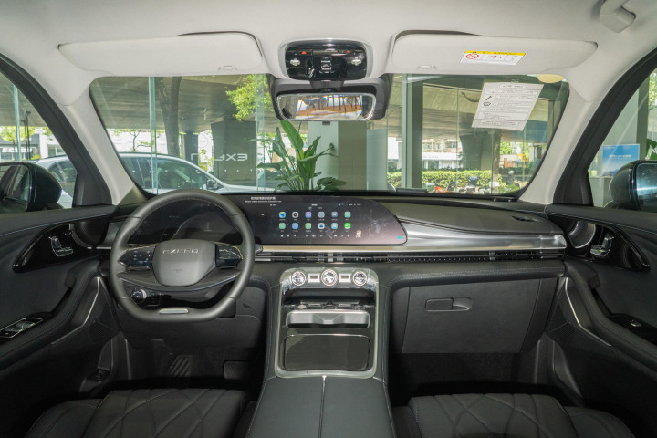 外观设计是这款车型的另一吸引点,采用了亚特兰蒂斯美学风格,整体造型兼具理性与优雅气质。车身运用长轴断悬黄金比例分割设计,宽体造型搭配1920mm的车宽,显得大气而稳重。悬浮式车顶可选白黑或灰黑搭配,展现出简约时尚的视觉效果。生产工艺上,车辆通过18台涂胶机器人和41台喷漆机器人保障精度,结合高级油漆工艺及8层纳米陶瓷漆工艺,车身质感细腻且耐久性强。细节之处,隐藏式门把手和全LED灯组的加入,进一步提升了整体的科技感与精致感,无论是城市街头还是郊外公路,这款SUV都能凭借出色的外观设计吸引目光。